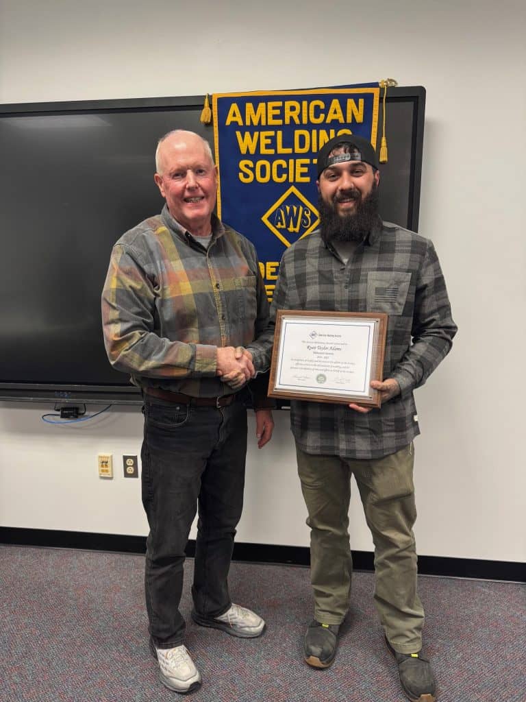 During the event, he received recognition from Mark Sapp, AWS District 4 Director and Senior M&P Materials Engineer at NAVAIR FRC-East. With more than 44 years of experience and a welding engineering background from The Ohio State University, Sapp’s acknowledgment underscores the technical excellence and leadership represented within the ASC team.