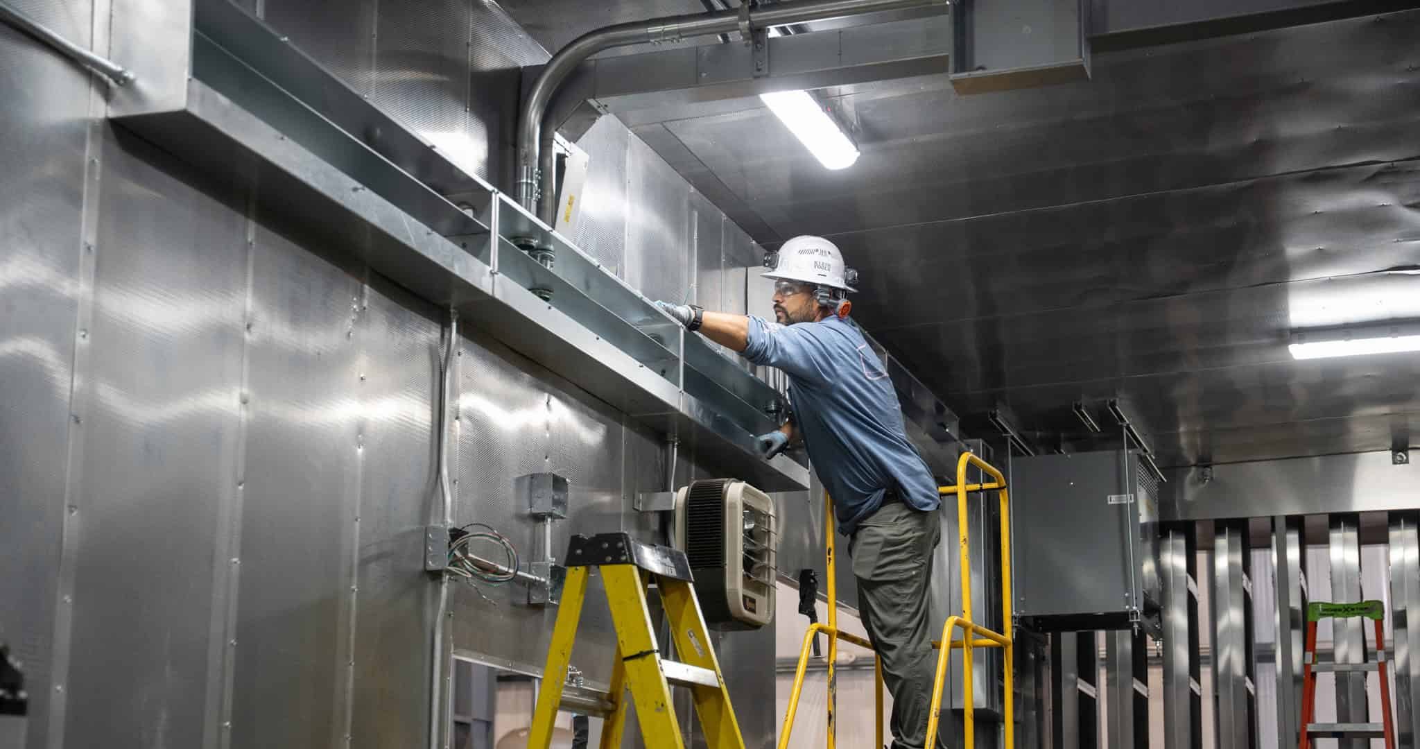 • worker assembling plenum exhaust Acoustical Sheetmetal Company